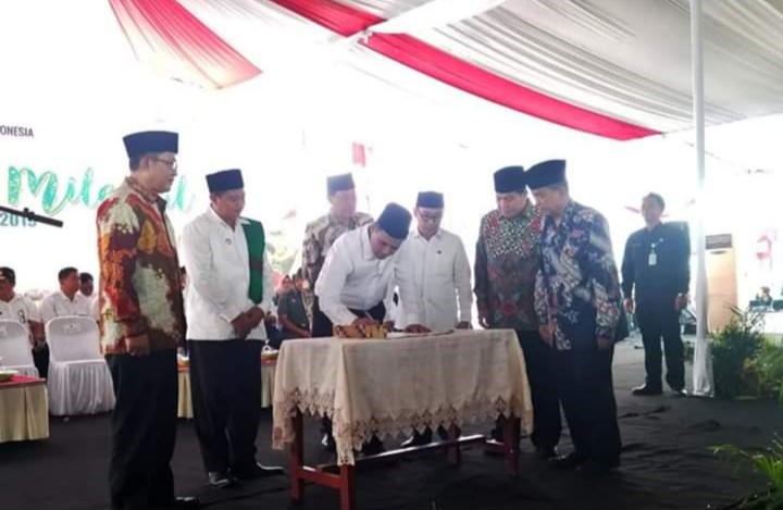 Bupati Tasikmalaya H Ade Sugianto S.IP dampingi Menteri Pertanian Republik Indonesia serta Wakil Gubernur Jawa Barat saat Launching Santri Tani Milenial Tingkat Nasional yang dilaksanakan di Kecamatan Manonjaya Kabupaten Tasikmalaya yang dihadiri oleh 15 ribu santri dari 34 Provinsi di Indonesia pada Kamis (25/01/2019).