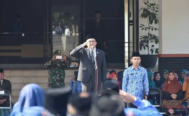 Bupati Tasikmalaya H. Ade Sugianto, S.IP bertindak sebagai inspektur upacara pada Peringatan Hari Kesaktian Pancasila (HAPSAK) Tingkat Kab. Tasikmalaya Tahun 2019, bertempat di halaman Setda Kab. Tasikmalaya, Selasa (01/10/2019)