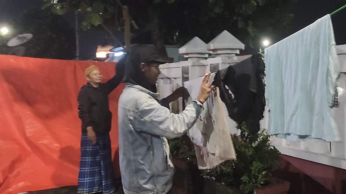 Selama berada di lokasi, peserta aksi tidak hanya menyampaikan aspirasi melalui orasi. Mereka juga melakukan aktivitas sehari-hari di sekitar area aksi, bahkan menjemur pakaian di pagar Balai Kota sebagai simbol keseriusan dan keteguhan sikap.