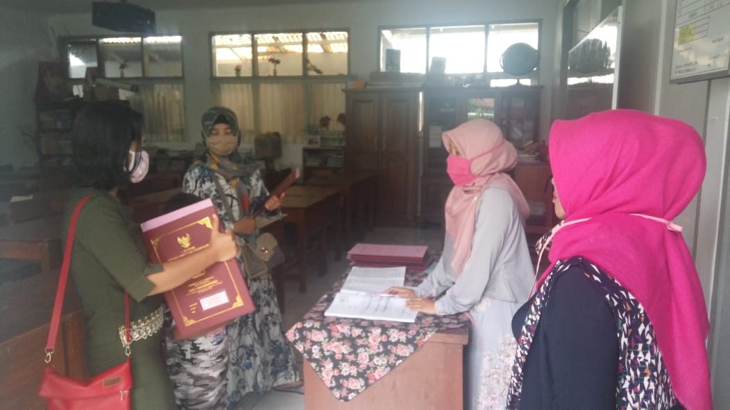 Salahsatu guru kelas III-A Hernina, S. Pd mengatakan untuk pembagian raport dimulai pada pukul 08.00 WIB yang mana orang tua murid tidak diperkenankan berkerumun di dalam kelas, jadi sistemnya ada yang 1 orang-1 orang, adapun paling banyak 2 orang.