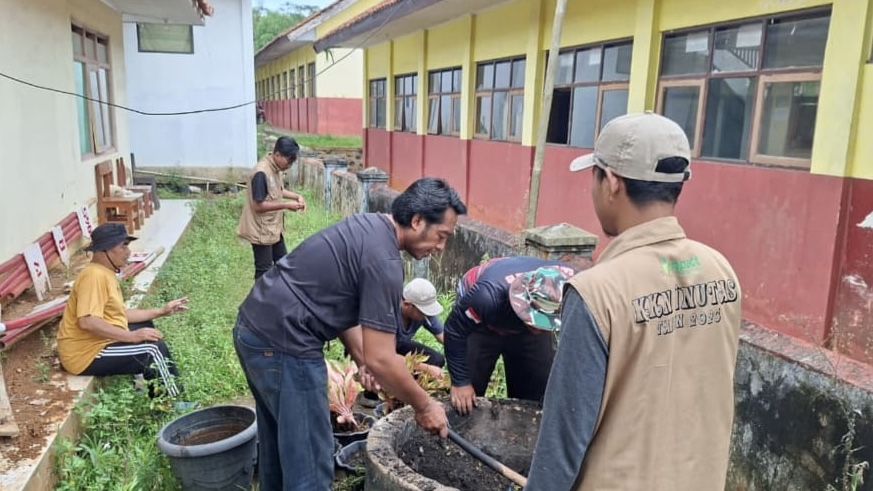 Nagaratengah – Gemamitra.com | Mahasiswa Kuliah Kerja Nyata (KKN) Kelompok 04 Institut Nahdlatul Ulama Tasikmalaya (INUTAS) bersinergi dengan warga dan perangkat Desa Nagaratengah melaksanakan kegiatan gotong royong pembersihan lingkungan dan penghijauan di sekitar Kantor Desa Nagaratengah, Kecamatan Cineam, Kamis (15/01/2026).