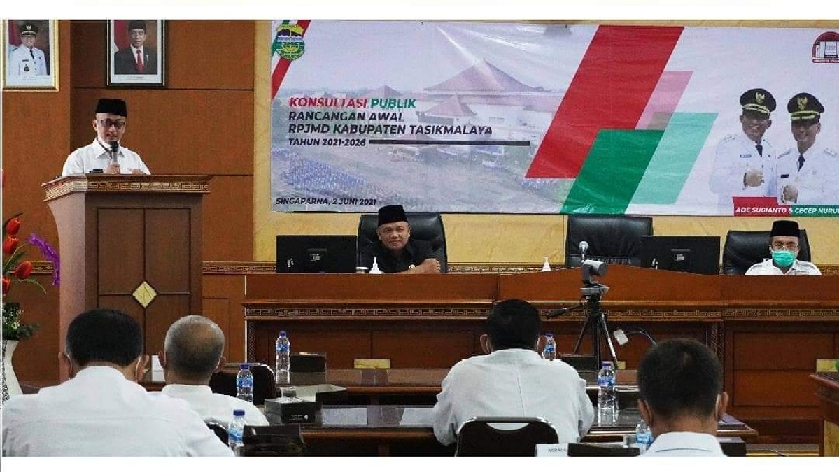 Bupati Tasikmalaya dalam sambutan tertulis yang dibacakan Wakil Bupati menyampaikan RPJMD tahun 2021-2026 yang dilaksanakan pada hari ini merupakan suatu tahapan penting dalam perumusan kebijakan pembangunan daerah di Kabupaten Tasikmalaya.