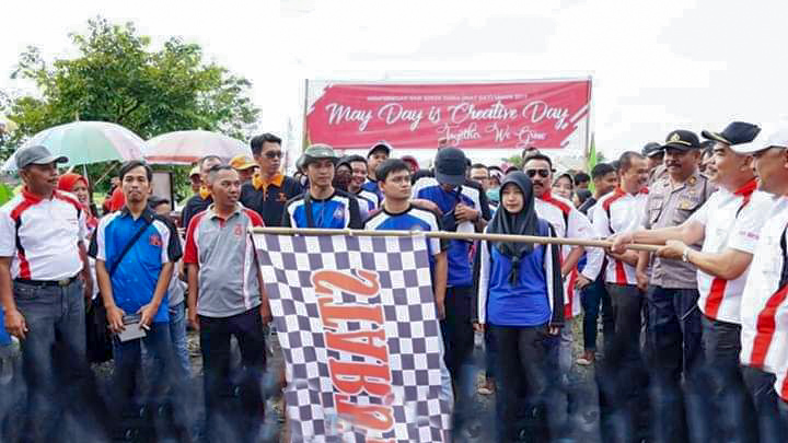 Pelaksana Harian Sekretaris Daerah (Plh Sekda) Kabupaten Tasikmalaya Drs. Iin Aminudin, M.Si mewakili Bupati Tasikmalaya H. Ade Sugianto, S.Ip melepas peserta Gerak Jalan Sehat dalam rangka memperingati Hari Buruh Internasional, Start-Finish di Lapangan Desa Sukaratu Tasikmalaya, Senin (1/05/2019).